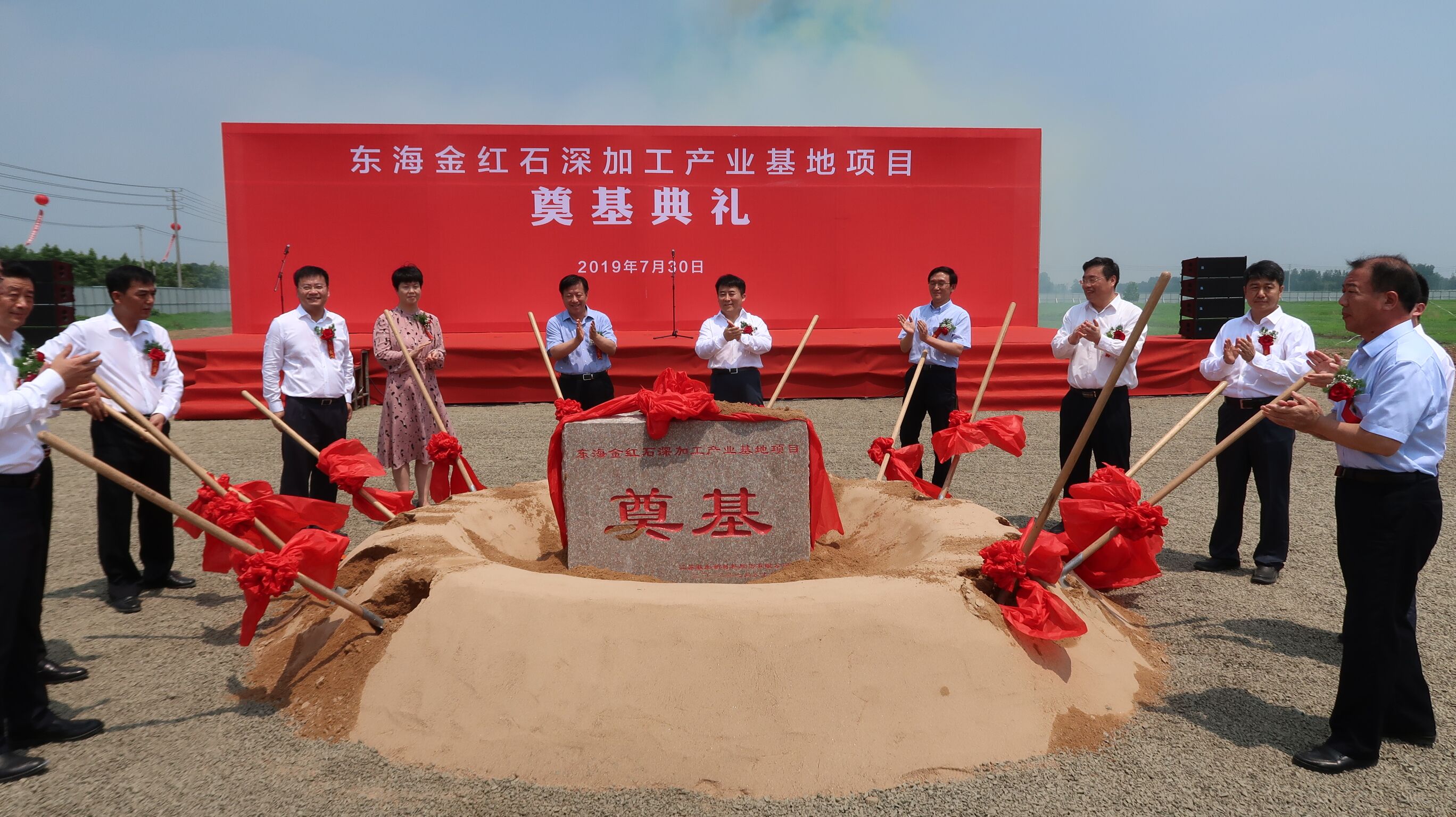 7月30日上午,日照石榴石礦業(yè)東海項目—江蘇載彤新材料金紅石深加工項目在東??h舉行開工奠基儀式,連云港市長方偉,副市長吳海云,東??h領(lǐng)導(dǎo)朱國兵、高美峰、陳啟發(fā)、何東明、郭鵬參加儀式并共同為項目培土奠基。載彤新材料金紅石深加工項目作為縣、市重點(diǎn)推進(jìn)項目受到各方領(lǐng)導(dǎo)和媒體的關(guān)注,連云港市發(fā)展和改革委員會并對奠基儀式進(jìn)行了跟蹤報道。